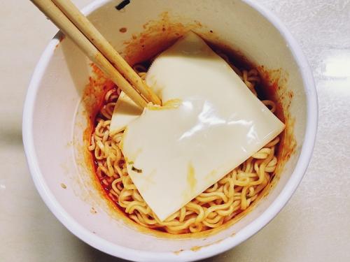 많이 매운 라면이라서 치즈 한장 쌈싸먹듯 얹어 먹었더니 맛도 중화되면서 참 맛있네요~