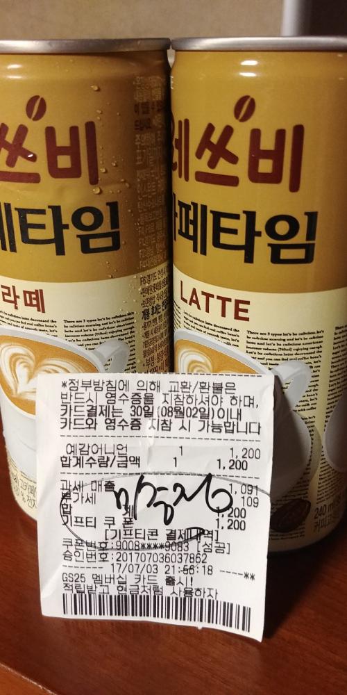 들어오는 길에 cu 들러서 페이코 첫 주차 사용하고 왔는데 버릇처럼 집어든 맥스봉이 이번 달은 행사가 아니래서 급하게 1+1인 레쓰비 카페타임을 샀는데 집에 와서 보니 롯데네요. 뭔가 씁쓸하네요...^^;