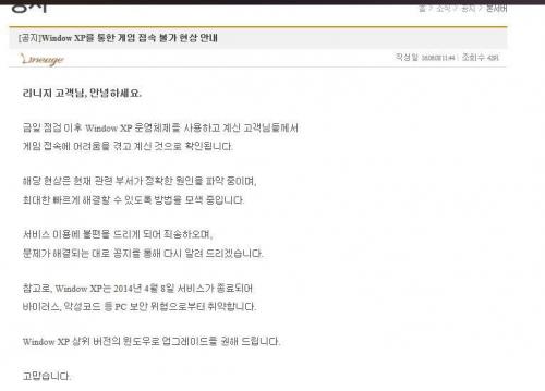 하긴.. 리니지면 XP에서 접속할 인원이 상당할텐데.. ㅋㅋㅋ