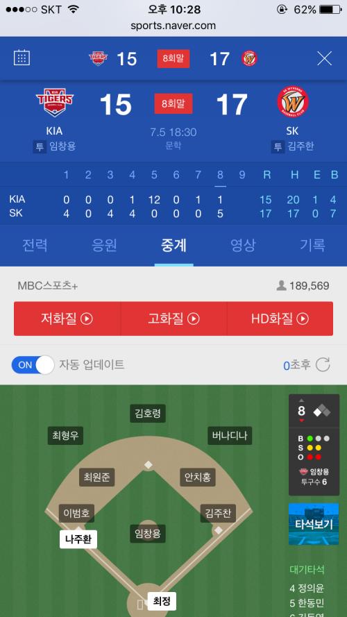 진짜 이 두 팀 오늘만 야구하나요 ㅋㅋㅋ 야구 점수가 뭐이래....