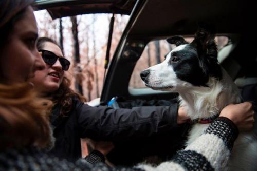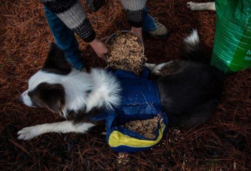 산불 피해 지역 복구를 위해 '씨앗 주머니' 매단 개들