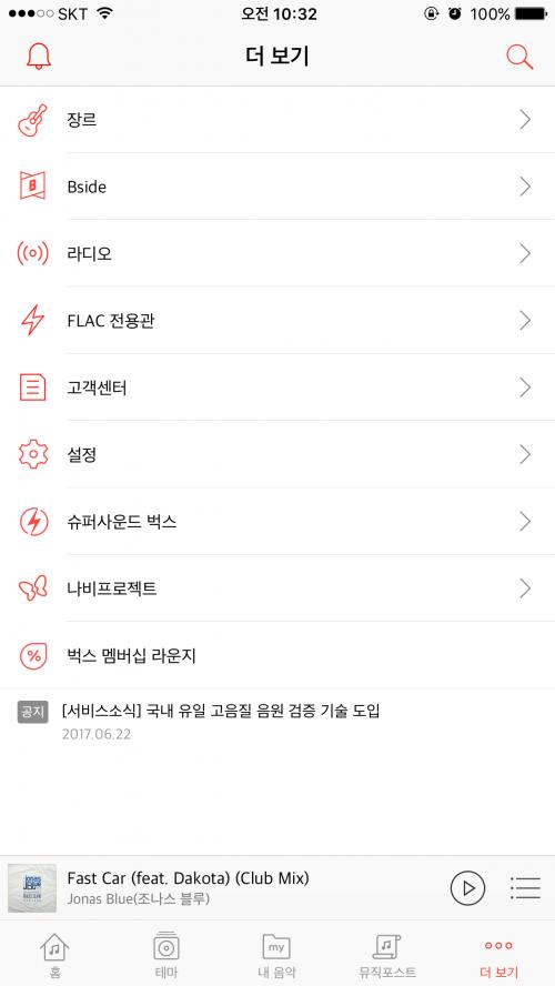 벅스 뮤직플레이어 홈화면에서