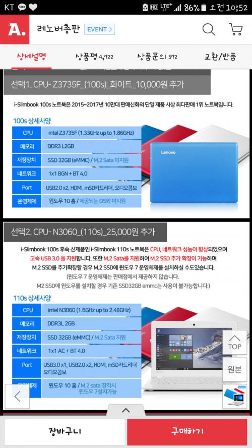 가격이 얼마인지 모르겠는데 2년전 보급형 사양 보다 안 좋네요. 15만원 이상이면 다른제품 사는게 나아보여요. 제가 작년 초에 25만원 주고 cpu 벤치마크 점수 1.5배 높고 램 4기가로 2기가 더 많은 제품 사 쓰고있는데, 웹서핑 창 몇개만 띄워놔도 암 걸릴 것 같아요. 간신히 하는 정도. 관리하면서 쓰는데도 그래요. 그런데 그것보다 cpu도 안 좋고 램도 낮으면 차라리 제가 쓰는 넷북 상태좋은 중고로 사는 게 낫죠. emmc 32기가면 윈도우 업데이트는 포기하시는 거고요. | ||