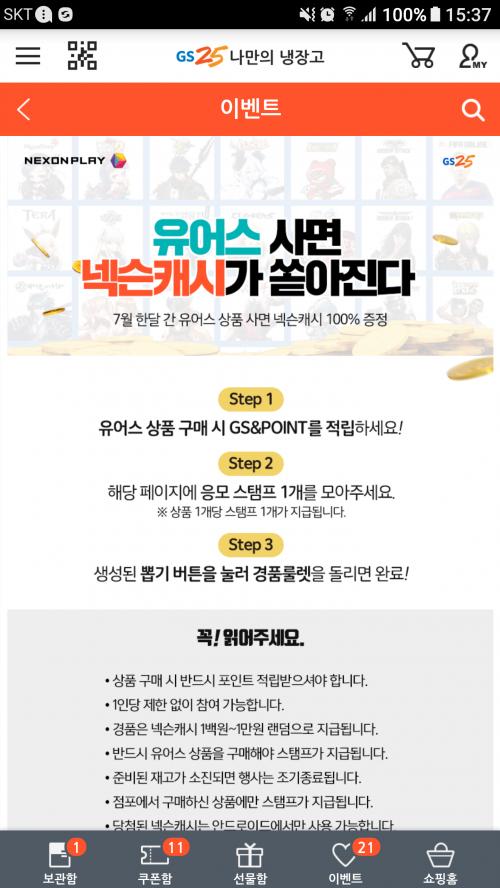 GS25 나만의냉장고에서 받은 넥슨캐시 쿠폰 나눠요.