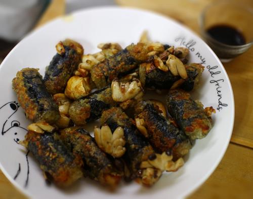 김말이와 버섯을 바싹 구웠더니 은근 혐이네요 ㄷ ㄷ ㄷ