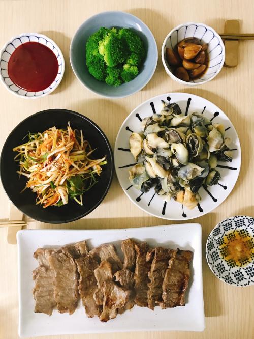 코스트코 다녀왔으니 꽃갈비살이 메인이고, 얼마전부터 생각나던 소라도 사왔어요.
