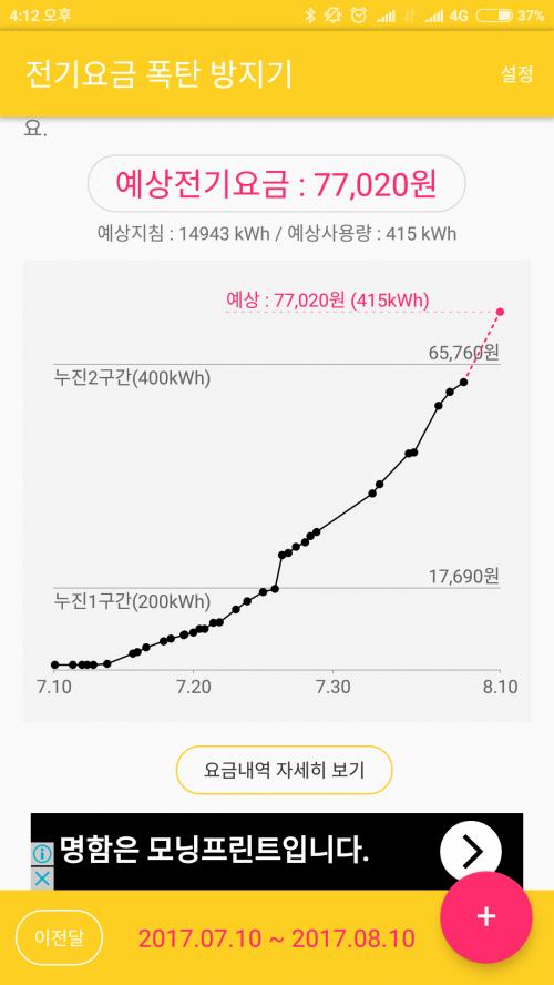 아 400 살짝 넘으면 기본료가 아깝네요 ㅎㅎ.. 누진도 억울한데 구간 기본료라니 ㅎㅎ