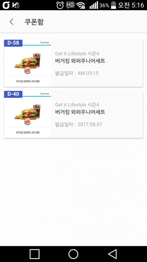일찍 일어나서 했더니 나왔는데 버거킹 두개가 나왔습나다