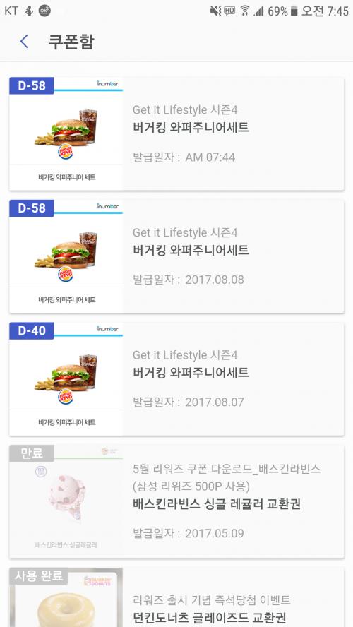 어제 당첨된 버거킹과 오늘것이
