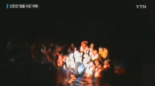 결국 가라 앉기 시작한 난민의 고무보트