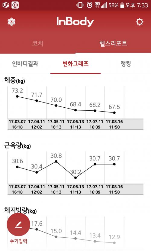 저번달에 4개월차 인바디 올렸는데 5개월 되어서