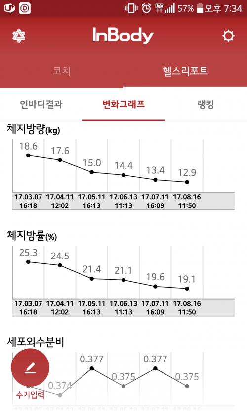 체지방 빠지면서 근육증가가 어렴죵 ㅋㅋㅋ 지키는거도 잘하는거라구 히는걸요 멋져요 ㅋㅋㅋ | ||