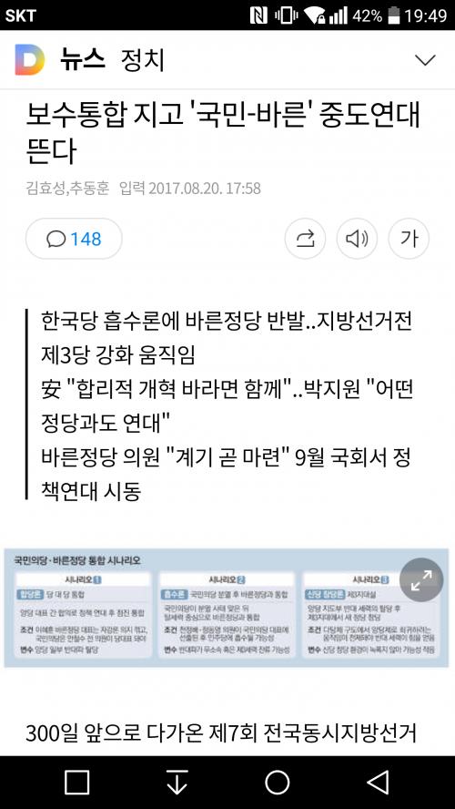 혹시나가 역시나로 흘러가네요.. 30석 40석을 가진 소수 정당으로써 결국 할 수 있는게 거의 없어보이니 연대라는 방향으로 가는건 기정사실이겠지만 안바른정당과 궁물당의 조합이라면 글쎄올씨다라는 반응이 먼저 나올꺼 같네요.