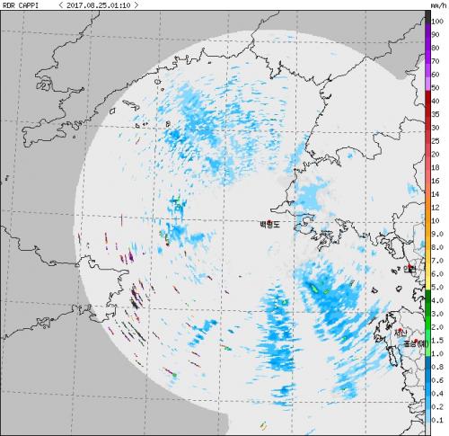 백령도 관측소에서 찍은 레이더 영상이라 그렇습니다. | ||