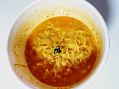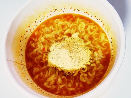 1단계인 분말스프만 넣은 상태. 스프가 연한 색일 줄 알았는데 의외로 빨간색을 띄고 있더군요