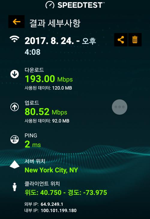속도도 엄청빠르네요.(심지어 저희 집보다 빠릅니다 ㅎㅎㅎ)