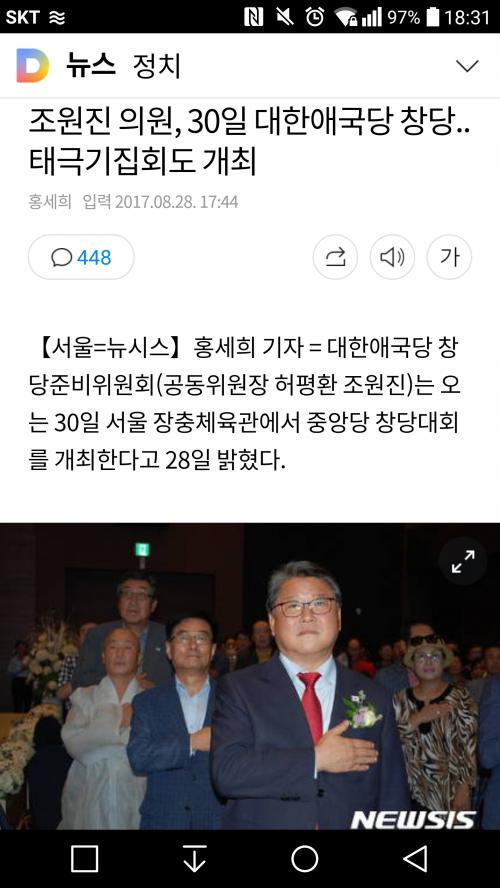 새누리당 만들어 죽쒀 개주고 나오고 이번에는 대한애국당을 만드신다는데 이번에도 개털되어 쩣겨나시지 말고 체면은 좀 챙기고 사시길..