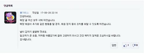 소비자의 커뮤니티+억울한 사람 만들지말자+소통하자 는 확고하신것 같아요 | ||