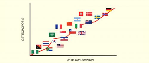 뭐 당연한 결과기도 하죠.. 다만, 그래프는 우유 섭취가 많을수록 골다공증이 더 걸리기 쉽다라는 결과에요. '칼슘 섭취에 우유가 좋다'라는 주장에 반박하기 위한.. | ||