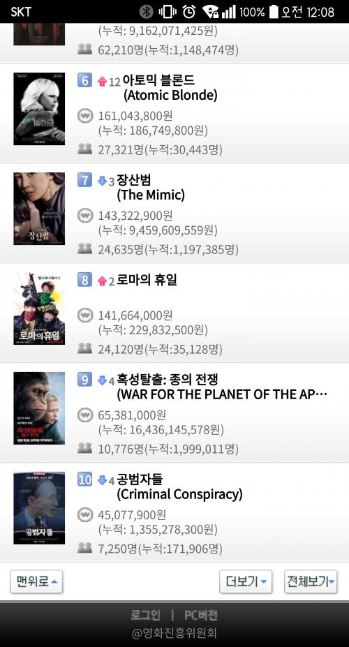 저기중에 저는 택시운전사, 혹성탈출,발레리안을 봤네요.