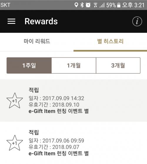 e-gift 자기에게 선물한 후 사용하면 별 적립됩니다. 18일까지요.