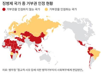 *징병제 국가 중 병역거부권 인정 국가들▼ 독일, 러시아등80여개국 중 40개국 정도...