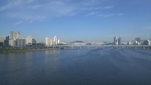 오늘 아침에 지하철 7호선으로 한강 건너는데 너무 한강과 하늘이 예뻐서 찍어봤습니다.