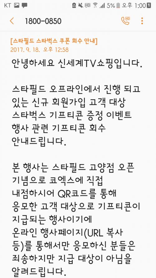 신세계tv쇼핑 문자왔어요