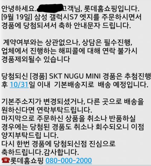 생각지도 못한 당첨문자를 받았네요 ㅎ