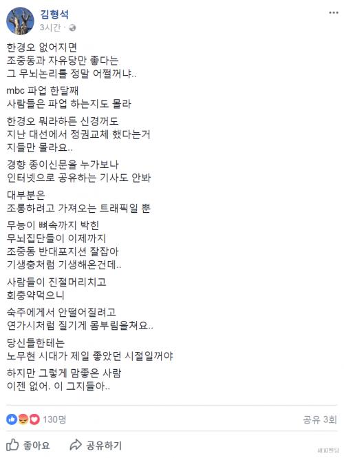 뉴비씨 대표 페북 - 한경오 이 그지들아