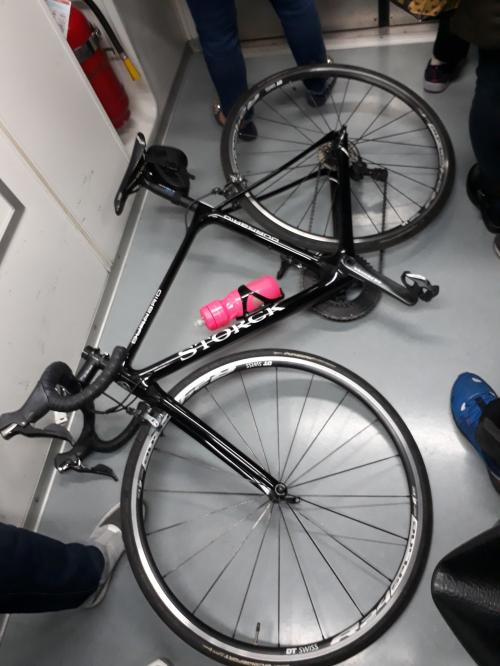 보통은 고무링으로 브레이크 잡고 벽에 붙여서 세워놓는데.. 그냥 세워놓으면 자전거가 넘어질수 있으니..아에 눕혀놓고 지는 좌석에 앉아서 편하게 가려고 저런짓 하는거죠...타인은