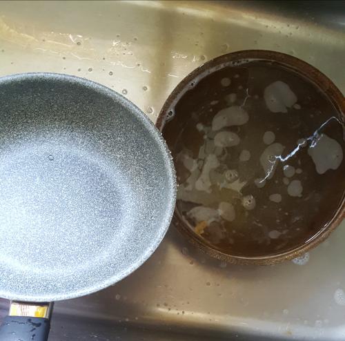 후라이팬은 바로바로 세척해줘야하고요.