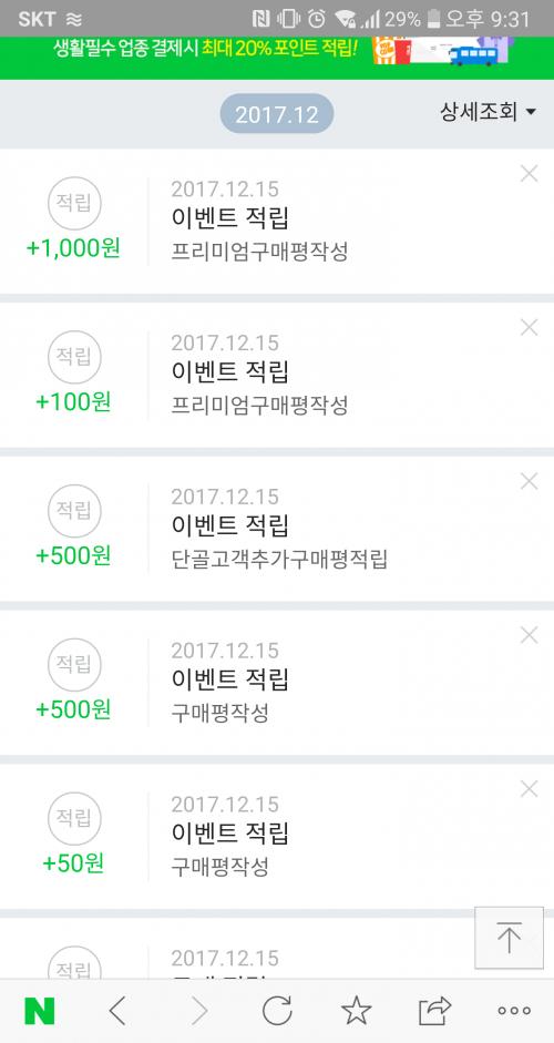 5찬원에 쿠폰 할인으로 4천원에 사서 2150점 네이버 포인트 적입.. 그리고 네이버 체크카드 포인트까지 알뜰히 챙기니 무지 싸게 샀네요. ^^