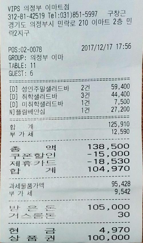 빕스 때문에 황당한 일도 있었지만 결국 터렛님의 나눔과 상품권 그리고 티멤버쉽 할인으로 선방했습니다. 이번엔 SKT 멤버쉽이 큰 힘을 발휘했네요..