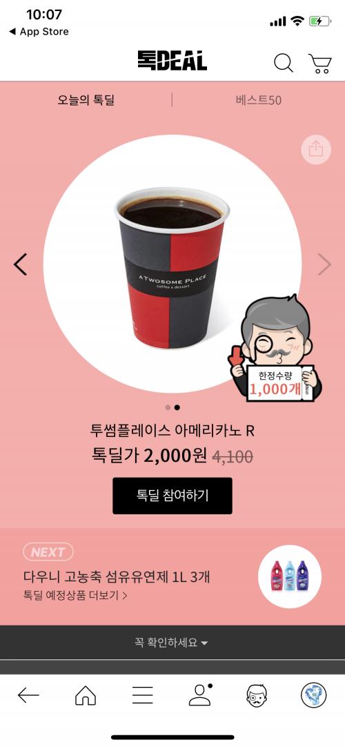 앱 업데이트 하시면 예전에 타임딜 있던 배너에 톡딜로 바뀌고 수량 아직 있어요 | ||