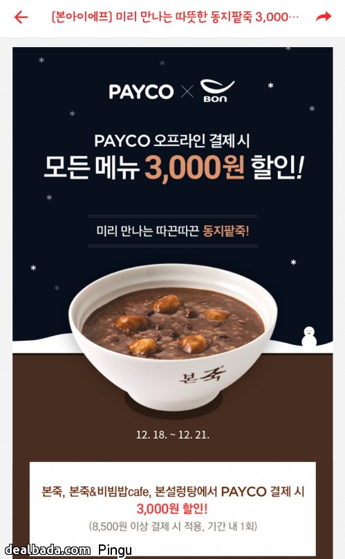 본아이에프에서 8,500원 이상 PAYCO 결제 시 3,000원이 즉시 할인됩니다.