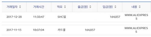 통장 입금일 : 2017-12-28