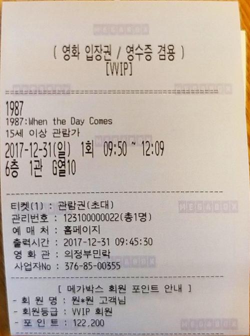 9시 50분 조조상영으로 1987 보러왔습니다..
