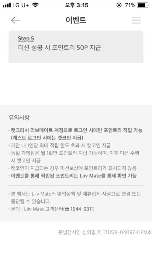 위치근방 가맹점 1회미션시 리브메이트 50점적립되어요^^