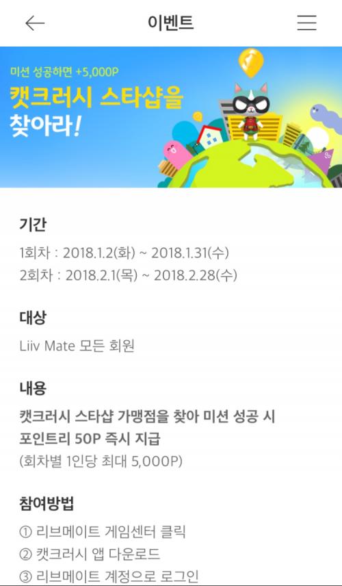 캣크러시 라는 어플 설치후 (처음로그인시 리브메이트로 로그인하셔야해요!!!)