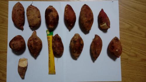 상품 상세 페이지에 커피믹스랑 크기 비교해 놓은거 있어서 배송온 고구마들이랑 동일한 커피믹스 옆에 두고 사진 찍어 봤는데 절대 "특상" 아니고