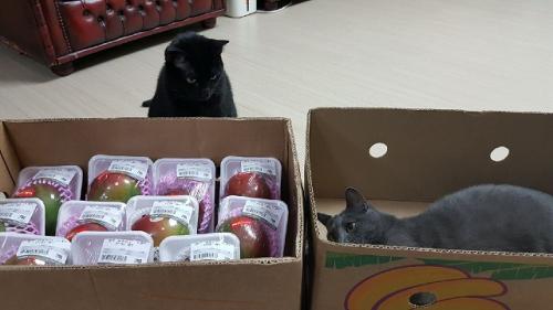 냥이들은 과일엔 관심없겠죠? 어서 박스를 내놓아라 ㅋㅋㅋ | ||