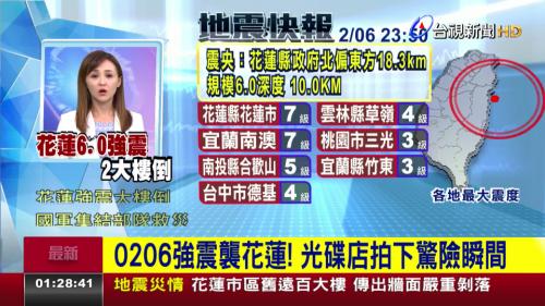 진앙지가 화련근처라 화련쪽에 피해가 심해보이네요 | ||