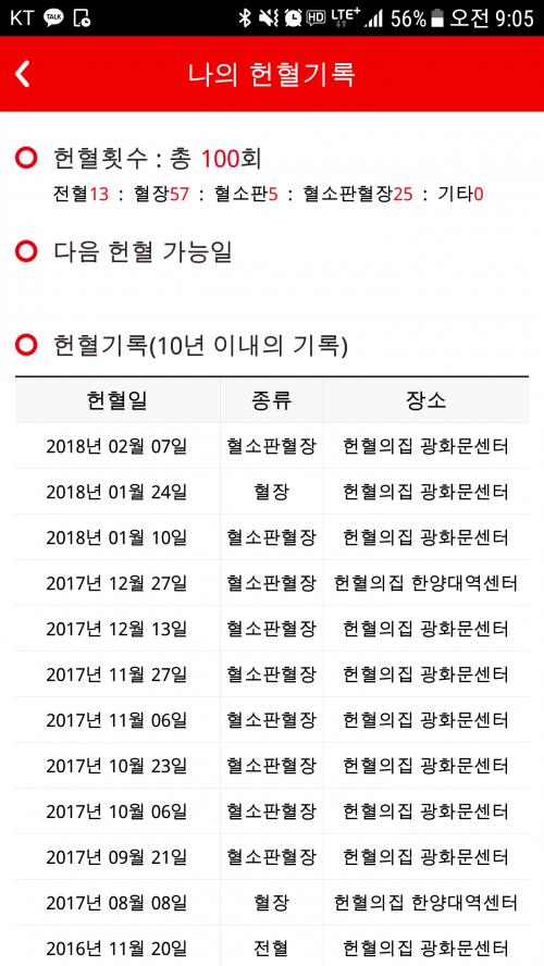 헌혈 목표가 100번이었는데..