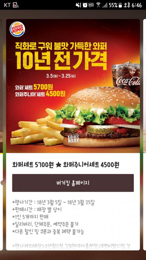 주문앱으로보니 와퍼세트 8500원, 와퍼 단품 6200원이네요. | ||