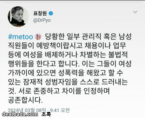 남성들이 업무에 여성을 배제한다.. 저도 표창원씨 좋아하지만 펜스룰 언급 맞는것같은데요
