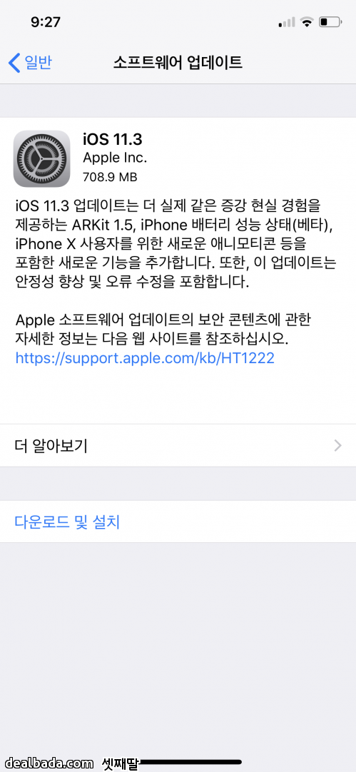 iOS 11.3 업데이트는 더 실제 같은 증강 현실 경험을 제공하는 ARKit 1.5, iPhone 배터리 성능 상태(베타), iPhone X 사용자를 위한 새로운 애니모티콘 등을 포함한 새로운 기능을 추가합니다. 또한, 이 업데이트는 안정성 향상 및 오류 수정을 포함합니다.