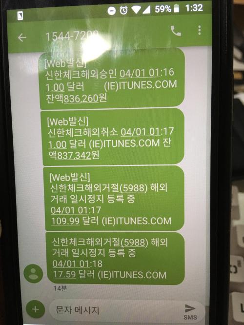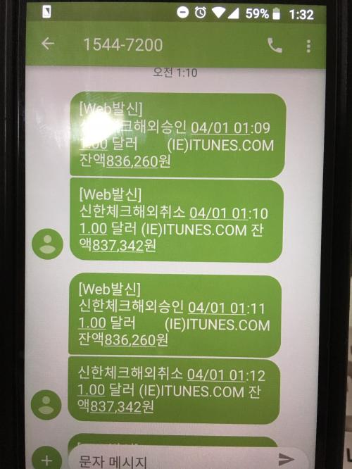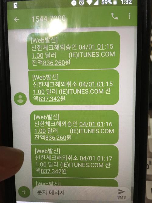 문자가 옵니다 해외승인1불???