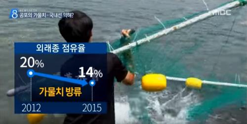 그래서 가물치를 잡아하다 상류에 풀어놔주니 외래종 수가 급작스럽게 줄어듬..