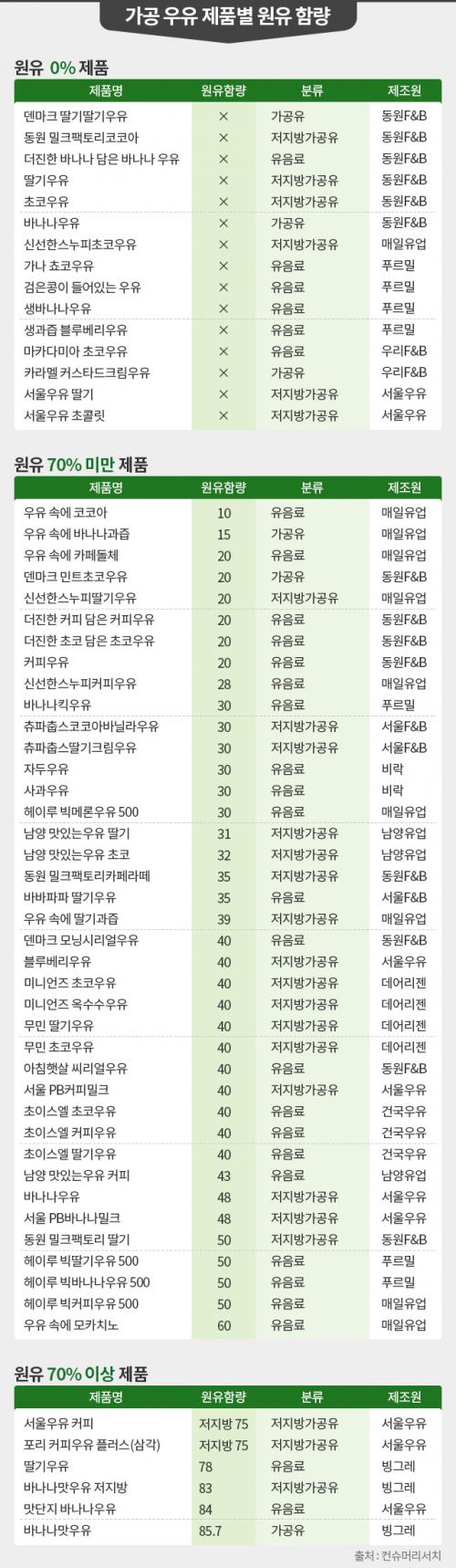 ~맛 우유 뿐만이 아니라 요구르트류도 빙그레께 원유 함량이 높습니다 | ||